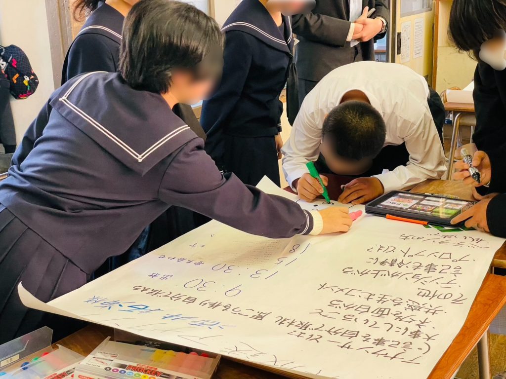 生徒たちは、最初こそ緊張した様子でしたが、ゲストティーチャーの皆様との対話を通じて、次第に表情も和らぎ、積極的に学びを深めていました。